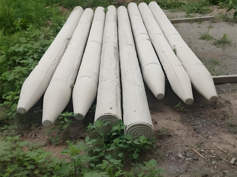 在水下和泥土交界的 “干濕交替區(qū)”,木樁腐蝕速度最快。但水泥仿木樁就不一樣,哪怕是有輕微污染的河水,比如含少量生活污水,也不會(huì)被腐蝕,因?yàn)榛炷敛粫?huì)被微生物分解,也不會(huì)和污水里的有機(jī)物發(fā)生反應(yīng)。再看鹽堿地或者沿海區(qū)域,這些地方的土壤、海水里含鹽量高,對(duì)金屬、木頭的腐蝕特別強(qiáng),普通鋼管半年就會(huì)生銹,天然木樁 1 年左右就會(huì)腐爛。但水泥仿木樁在這種環(huán)境下表現(xiàn)很穩(wěn)定,